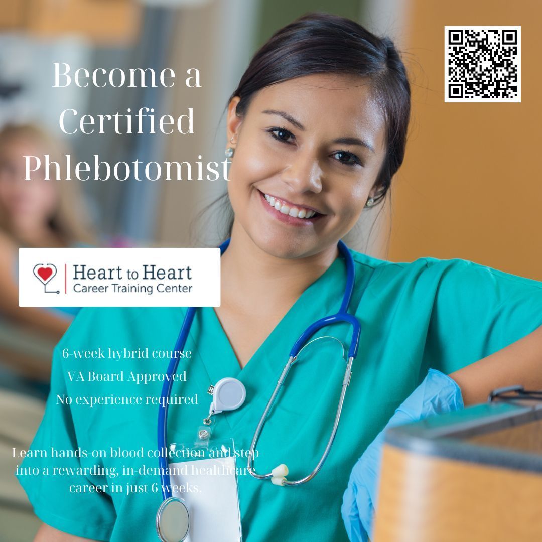 Looking for a high-demand healthcare career that’s fast, flexible, and rewarding? Our VA Board Approved Hybrid Phlebotomy Course gives you the skills, certification, and confidence to start working in just 6 weeks—no experience needed. Why Become a Phlebotomist? High Demand: Hospitals, clinics, and labs need certified professionals. Quick Entry: Complete your training in just 6 weeks. Rewarding Work: Help patients and make a difference every day. What You’ll Learn: β