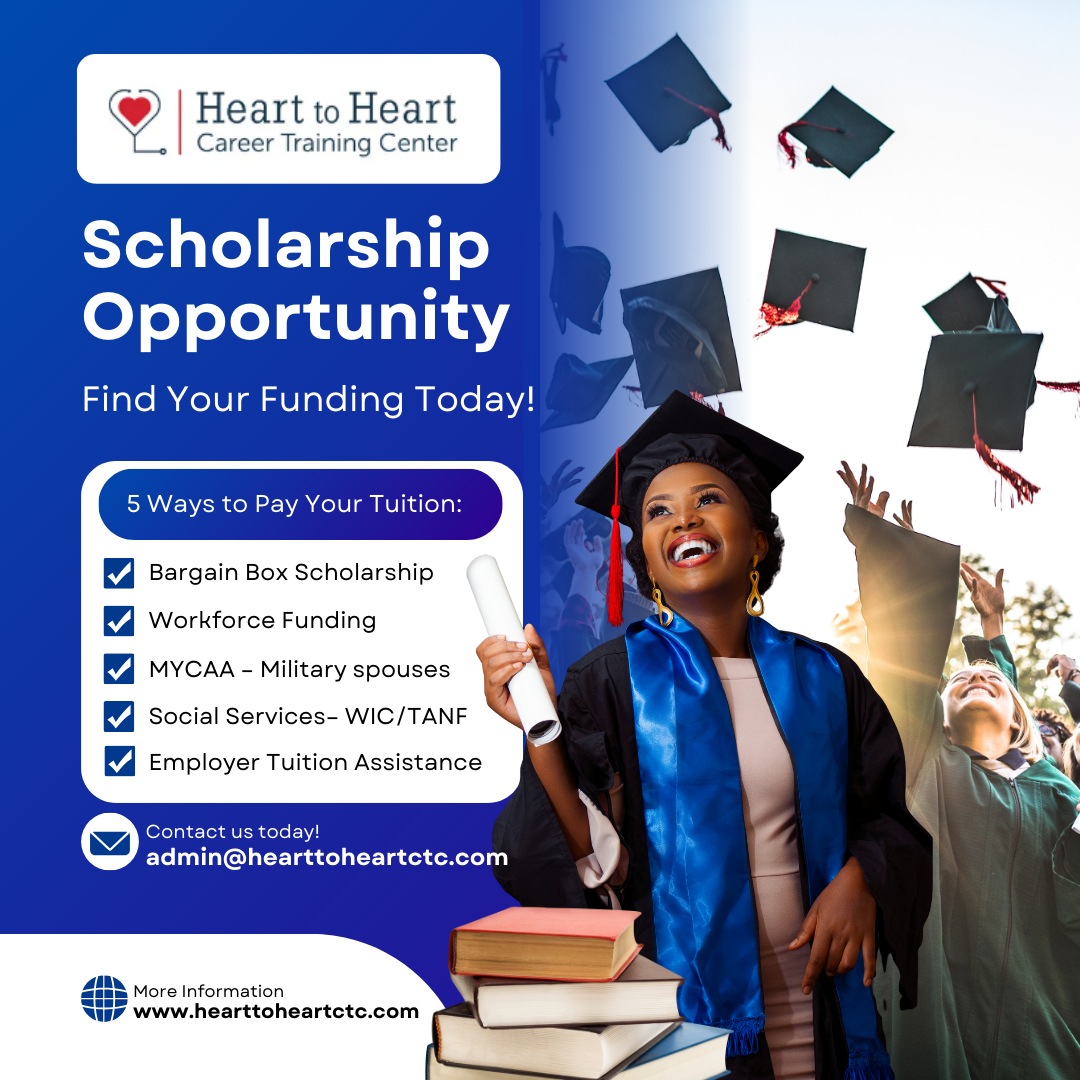 π’Calling all residents of York County and Poquoson! We’re excited to share a wonderful opportunity to help you jumpstart your education and career goals. The Bargain Box Scholarship is designed to make getting started easier than ever. By completing just 4 hours of community service , you could earn up to $2,000 toward tuition at Heart to Heart Career Training Center —and it applies to all training courses. Why this scholarship is so valuable: Supports local students in pursuing education Simple to qualify—just 4 hours of service Works for any Heart to Heart Career Training Center class A perfect way to start 2026 with a new career Not a York or Poquoson resident? Don’t worry! We offer tuition assistance options for students outside these areas , so everyone can take the first step toward a new career. Your future in healthcare career is waiting—and we’re here to support you every step of the way. π Questions? Call us at 757-229-0919 to learn more and apply today! Share this opportunity with friends and family in York & Poquoson—let’s make 2026 the year you invest in your future!